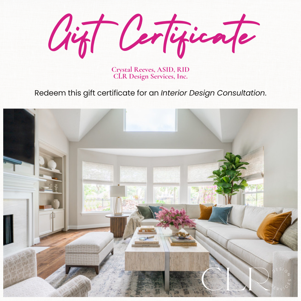 Give someone special the gift of inspired living with our Interior Design Consultation Certificate. This experience offers a personalized in-home meeting where we’ll walk through your space, discuss your goals, and uncover how your home can best serve your lifestyle, tastes, and functional needs.